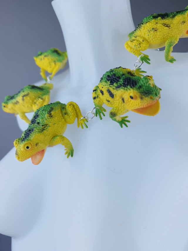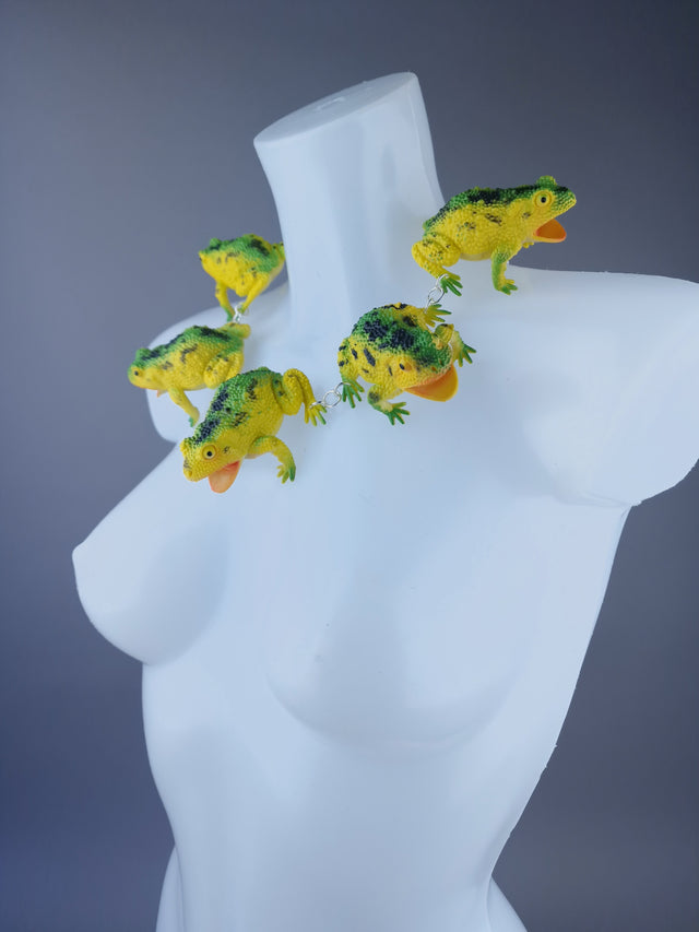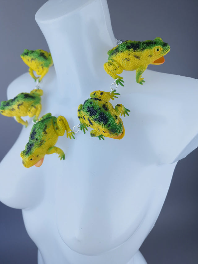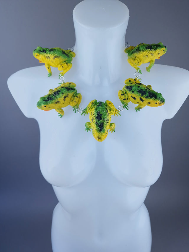 "Ribbit" Large Green Yellow Frog Neckpiece